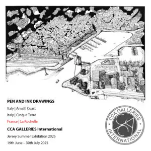 Three of my original pen-and-ink drawings are now exhibiting for the Jersey Summer Exhibition 2025 at CCA Galleries International from June 19th to July 30th, 2025.