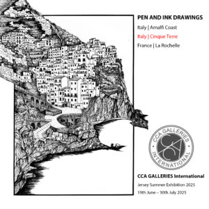 Three of my original pen-and-ink drawings are now exhibiting for the Jersey Summer Exhibition 2025 at CCA Galleries International from June 19th to July 30th, 2025.